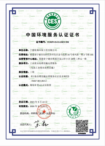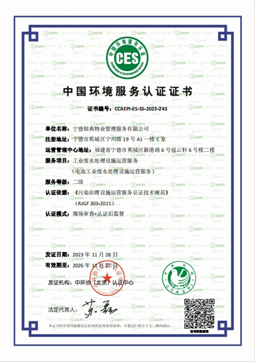 - 中國環境服務認證證書-工業廢水處理