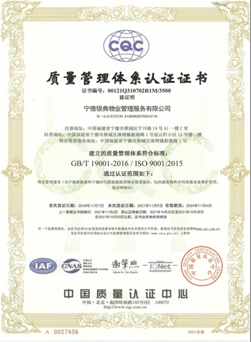 - 質量管理體系認證證書