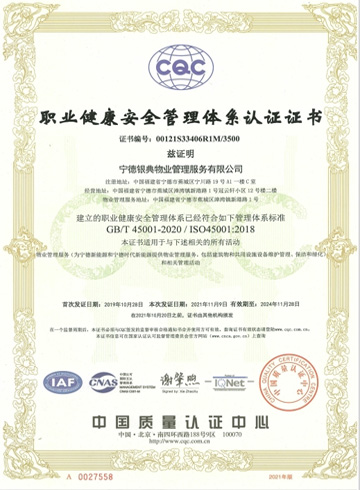 - 職業健康安全管理體系認證證書