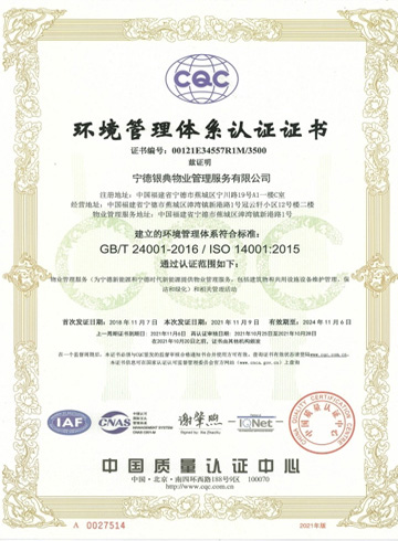 - 環境管理體系認證證書