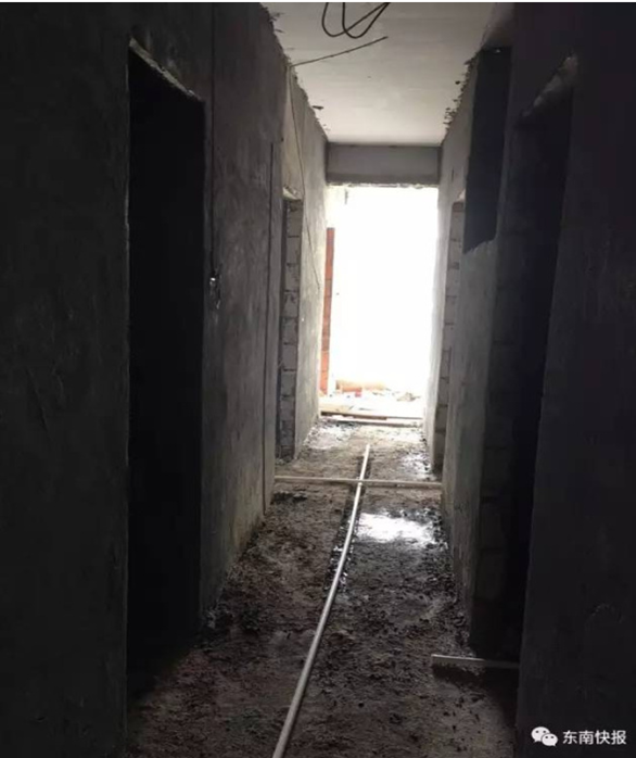 在現(xiàn)場,記者并未找到施工人員和房東。只見802室的客廳、廚房地面確實(shí)挖出深10厘米的溝渠,過道邊還放著許多管道和水龍頭以及裝修材料。